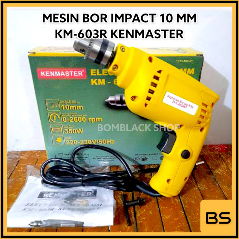 Mesin bor listrik Kenmaster ini berdaya 350 W dengan putaran maksimal 2600 RPM berbobot 2Kg. Saya sendiri pernah menggunakan mesin bor ini untuk keperluan pertukangan.